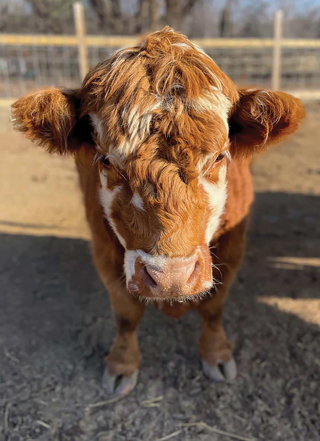 Wilma, Miniature Highland cow: Wilma, a red and white cow, is social and calm. She loves getting brushed.
